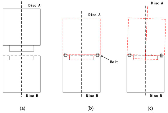 Rotor assembly diagram. (a) Before assembly; (b) Before bolt tightening; (c) After bolt tightening.