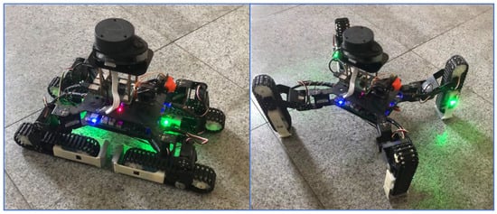 - Guo, W.; Qiu, J.; Xu, X.; Wu, J. TALBOT: A Track-Leg Transformable Robot. Sensors 2022, 22, 1470. [Google Scholar] [CrossRef]
