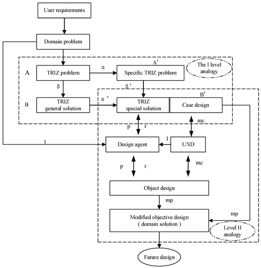 On this basis, Tan et al. [17] proposed a two-stage analogy model, as shown in Figure 2, which combines TRIZ and an episodic memory module to solve domain problems for innovative conceptual solutions.