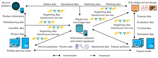 From Figure 3, establishment of a digital twin knowledge base mainly relies on existing digital twin technology. The product service platform records product information, manufacturing data, assembly data and other relevant data. At the same time, the product service platform can also collect product market data, operational data, etc., and aggregate various data information into a data twin knowledge base through supporting data transmission services. Information collection and control equipment can collect device parameters and operational data of the product physical entity, and establish an information channel between physical prototype and its digital model. This information can also be aggregated into digital twin knowledge base. When serving product design, digital twin knowledge base can output collected simulation data and forecast data to assist designers in designing new products. Similarly, the design process and design information of new products can also be stored in digital twin knowledge base for subsequent recall. The establishment of a digital twin knowledge base can enable enterprises to form a closed loop from product design to product application, and greatly enhance the sustainable competitiveness of enterprise products.