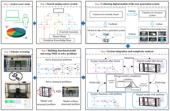 In the multi-analogy innovative design framework, this research conducts an in-depth study of the innovative design process and proposes a multi-analogy innovative design process model based on digital twin. The Main process of the currently proposed M-AID model includes six steps, as shown in Figure 6. The steps are specified as follows.