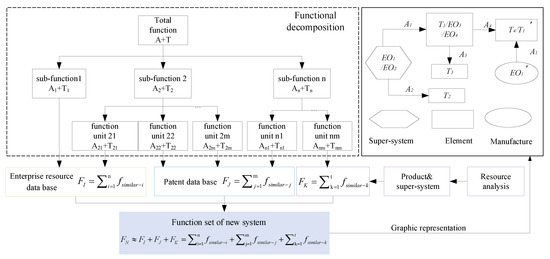 (d) Functional requirements and external resources are analyzed to identify missed manufacturing sources and the super-system in existing functional sets. This bridges manufacturing system and super-system to determine function , which constitutes function set :