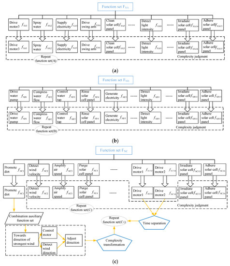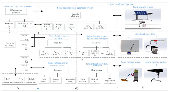 (b) By identifying similar functions in the existing knowledge base according to the similarity-of-the-function principle from the total function to the function unit, function set can then be constituted: