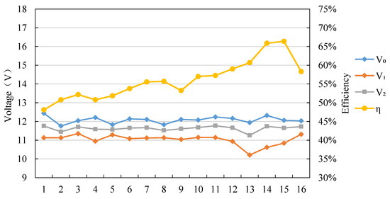 | Number | V0 (V) | V1 (V) | V2 (V) | η% |