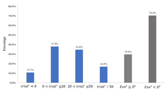 As stated above, the inclusion of the Q-learning algorithm, the migration between two employed bee swarms and modified restart strategy in the scout phase really improve the performance of QABC. The Q-learning algorithm results in the dynamical adjustment of search operators in the employed bee phase and onlooker bee phase. As a result, the search operator is not fixed and varied dynamically, and the exploration ability can be improved. Migration leads to the full use of the best solutions of and , and the restart strategy makes the population evolve with higher diversity. These features can lead to better search efficiency. Based on the above analyses, it can be concluded that QABC can effectively solve the distributed three-stage ASP with factory eligibility and setup times.