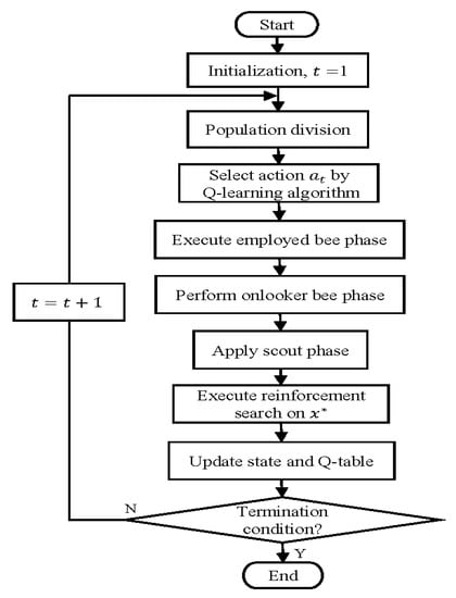 - Ma, P.; Zhang, H.L. Improved artificial bee colony algorithm based on reinforcement learning. In Proceedings of the International Conference on Intelligent Computing, Lanzhou, China, 2–5 August 2016; pp. 721–732. [Google Scholar] [CrossRef]