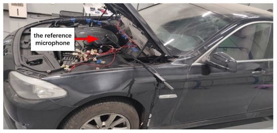 For further testing the proposed vehicle ANC system on the vehicle engine noise cancellation, the reference microphone was placed in the vehicle’s engine compartment (see Figure 12).