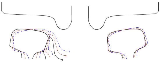 Under the condition that the position of the gauge measuring point remains unchanged, the profile of the switch rail is redesigned. Figure 10 shows a comparison diagram of the reduction of different values for the switch rail of two typical cross-sections.
