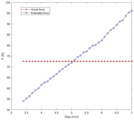 Comparison of the actual electromagnetic force and the electromagnetic force estimated by Equation (16).