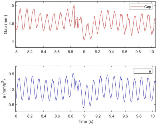 The gap and acceleration of the track when the self-excited vibration occurs.