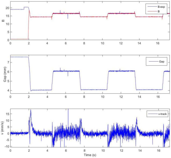 Meanwhile, a square wave signal with an amplitude of ±1 mm and a period of 2 s was applied to the desired suspension gap (5 mm). It can be seen that the suspension gap tracked the square wave signal well, with fast tracking speed, no overshoot, and no steady-state error. Meanwhile the actual magnetic flux also quickly tracked the expected magnetic flux, which showed that the performance of the magnetic flux loop was also reliable. However, the performance of this algorithm cannot be guaranteed under the flexible track condition, which needs further tests.
