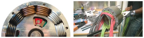 An alternative electric machine design, with a cable wound stator, was developed and introduced by ABB around the year 2000 [35,36]. Cable winding has so far been implemented for different machines in smaller volumes or prototypes, including generators for hydropower [37], wind energy [38,39,40], wave power [41] and hydrokinetic energy [42], and motors for offshore installations [43] and all electric vehicle propulsion systems [44,45]. The main potential advantages compared to conventional machine designs are higher efficiency and durability, together with fewer assembly steps since the windings are formed and fixated with pre-insulated cables that are fed through the stator. However, the time consuming, labor intense and tiresome manual stator winding process has been a bottleneck for producing cable wound electric machines in a larger series.