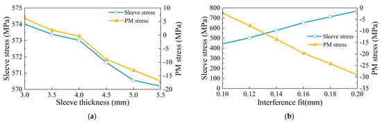 - Stress-field constraints: The maximum yield strength of PM is 75 MPa. The sleeve strength yield limit is 1960 MPa. The yield strength of the rotor core is 480 MPa.