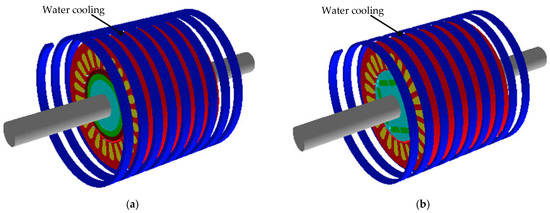 - Zhao, N.N.; Liu, W.G. Loss Calculation and Thermal Analysis of Surface-Mounted PM Motor and Interior PM Motor. IEEE Trans. Magn. 2015, 51, 8112604. [Google Scholar] [CrossRef]