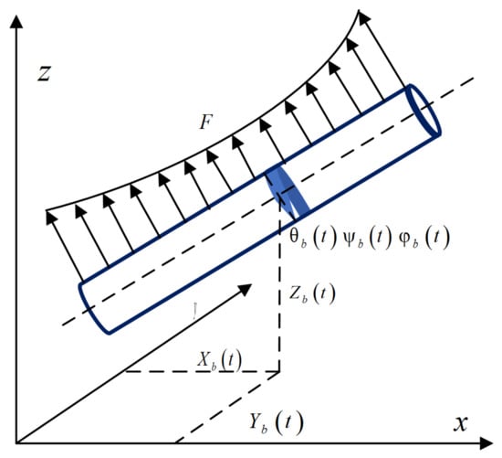 Based on the Timoshenko beam theory [14], the Timoshenko beam element and the dynamic model of the flexible track beam are shown in Figure 5 and Figure 6, considering the longitudinal , lateral , vertical , Y-direction shear , Z-direction shear and torsion around the x axis of the track beam, a total of six directions of vibration.