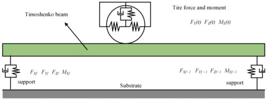 To order to consider the influence of the shear and torsional deformation of the track beam on the vibration characteristics of the straddle monorail system, a flexible track beam model is established based on the Timoshenko beam theory [12,13,14] and the following assumptions are made: Ignoring the flexibility of the bridge piers and connecting the track beam to the ground through elastic support.