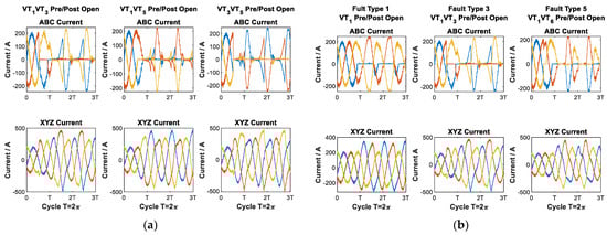 Six-Phase Current Variation of Electric Propulsion System Before and After Fault: (a) Same Fault Type; (b) Different Fault Types.