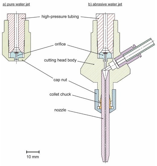 44] suggests 25 µm. Even if the given recommendations seemed to be valid without taking additional loads into account, it can be shown that the safety margin was very low. As these studies were made almost two decades ago and there have been no other recommendations so far, these large values may explain the fluctuations in orifice service life observed in practice. Thus, this study provides new data for a better understanding of the water treatment required in waterjet cutting to reduce premature orifice failure.