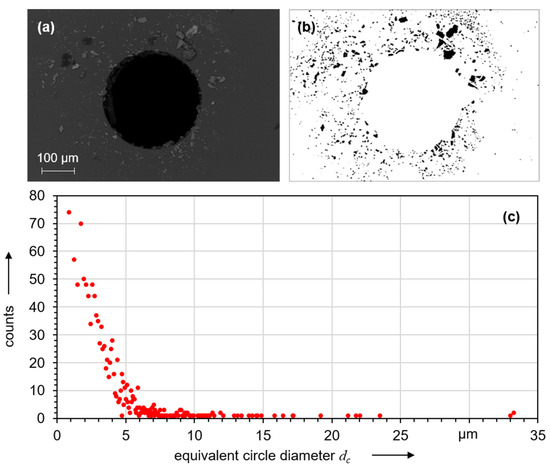 Figure 9b) using threshold values. Based on the different shapes of the individual particles, the diameter of a circle with the same area was then calculated.