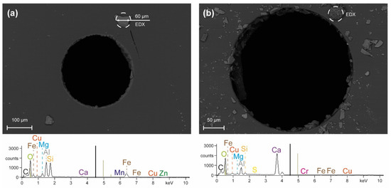 Energy-dispersive analysis of X-rays (EDX) of selected particles was performed to more comprehensively determine the origin and nature of these particles. The analysis in