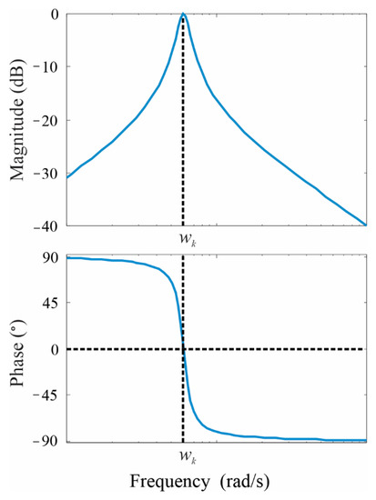 The frequency response of the band-pass filter is shown in Figure 2. As can be observed in the cutting frequency, , the magnitude is 0 dB and the phase is 0 degrees. Therefore, it is possible to subtract the estimated frequency component, , from the input signal, , in order to obtain the residue signal, .