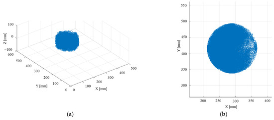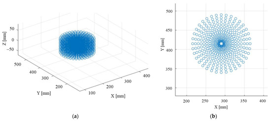 Figure 15. Point cloud spanned by the solution set SOLS(m) (m = 1,…,28,568): (a) isometric view; (b) Z axis view.