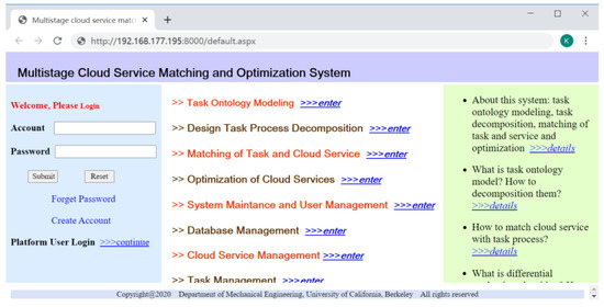 Interface of cloud service matching and optimization system.