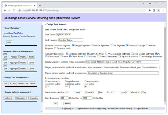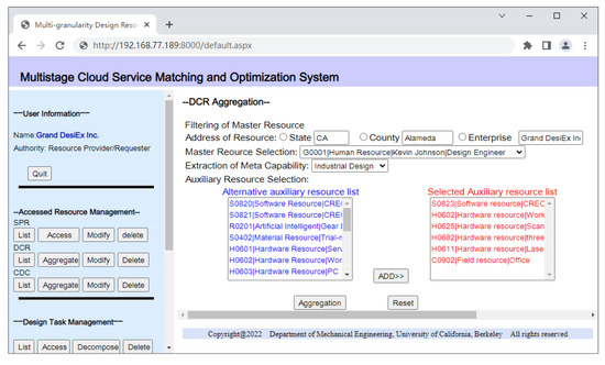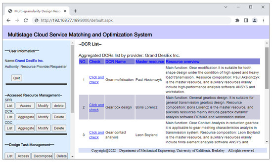 The meta resources provided by the resource provider are aggregated to DCRs, which undertakes the design task issued by the resource requester. The aggregation and list of DCRs are shown in Figure 15 and Figure 16. The design task access interface is shown in Figure 17. According to the task granularity, the resource requester set different levels of design tasks.