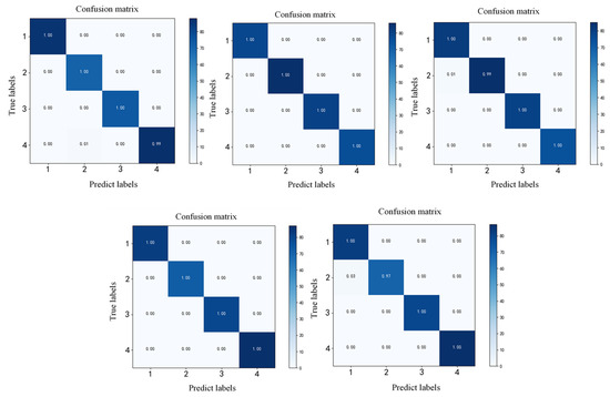 (3) Under the same conditions, the accuracy of multi-sensor information fusion is 99.75%, which is 0.50%, 3.25%, 1.25%, and 0.30% higher than that of single sensor, indicating that the accuracy of multi-sensor information fusion method is higher than that of single sensor.