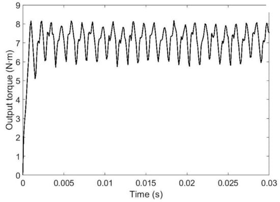 As a result of the EM analysis, the output torque and torque ripple were calculated as 7.16 N∙m and 3.46 N∙m, respectively, as shown in Figure 3. Compared with the performance specification of the BLDC motor (7.17 N∙m), the relative error is 0.14%.