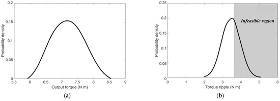 Probability distributions of (a) output torque and (b) torque ripple of the BLDC motor.
