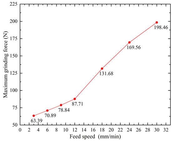 Variation curve of maximum grinding force under the certain feed speed.