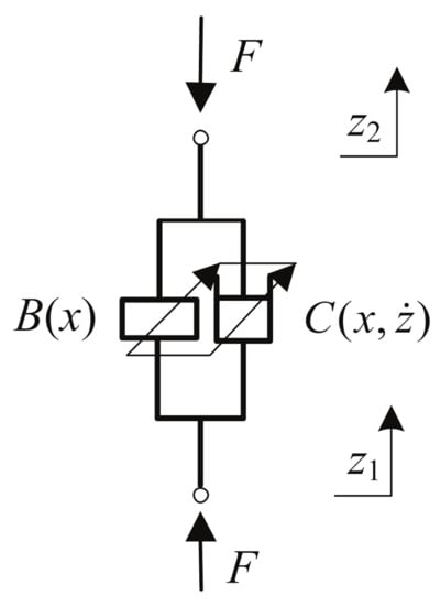 It is observed from Equations (6) and (12) that the damping coefficient and the inertance are both functions of the valve element displacement. Therefore, in the designed device, the damping and inertance can be simultaneously adjusted by changing the displacement of the valve element, which means that this device is equivalent to an inerter in parallel with a damper as shown in Figure 3.