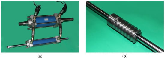 To verify the inertance model and damping model represented by Equations (6) and (12), considering factors, such as cost and processing technology, the prototype of the designed adjustable device and the valve element are made as shown in Figure 4. The device parameter details are shown in Table 1.