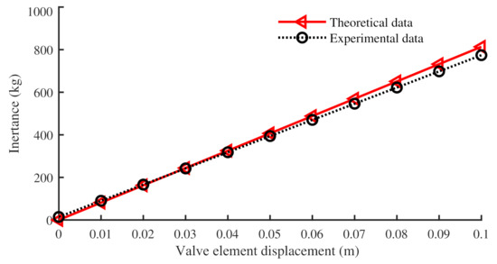 At the same time, the correctness of the damping model is verified. In addition, the error between the experimental and theoretical values of the inertance is large when the valve element displacement is large, which may result from the decrease in the fluid density caused by the increase in the working fluid temperature when the output force is large. However, the relative error is still less than 7%, which is acceptable in engineering applications.