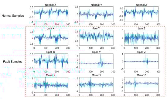 For a new diagnosis task, these deep neural networks always perform poorly on newly discovered target samples regardless of initial dataset training. Because there is a difference in distribution between source and target domains, this can be attributed to a variety of factors, including working conditions, mechanical characteristics, and sensor differences. []. To address this problem, several transfer learning techniques have been proposed that are designed to transfer fault diagnostic knowledge from one domain to another []. In recent years, intelligent fault diagnosis methods consisting of cross-domain adaptation and knowledge transfer can be effective for classifying fault types in varying working conditions [,,,], across different machines [,,], and imbalance instances [,], etc.