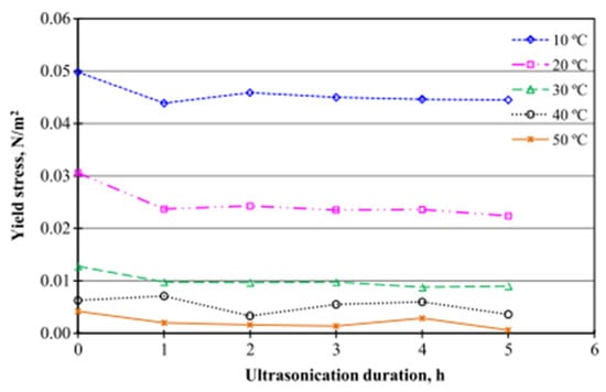 Effect of ultrasonication duration on the yield stress of the Al2O3-water NF. Adapted from [168].