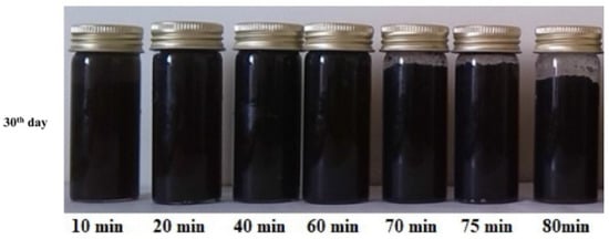Stability of MWCNT-water NFs formulated at different ultrasonication durations (30 days). Adapted from [136].