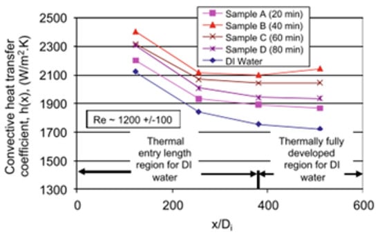 - Garg, P.; Alvarado, J.L.; Marsh, C.; Carlson, T.A.; Kessler, D.A.; Annamalai, K. An experimental study on the effect of ultrasonication on μ and heat transfer performance of multi-wall carbon nanotube-based aqueous NFs. Int. J. Heat Mass Transf. 2009, 52, 5090–5101. [Google Scholar] [CrossRef]