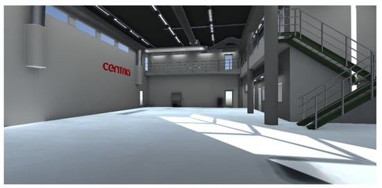 The implementation of the XR environment started by utilizing an industrial-grade three-dimensional laser scanner to form a point cloud of Robo3D Lab located in Ylivieska, Finland. Based on the point cloud data, a three-dimensional solid model was created and textured utilizing Blender. Features such as walls, floors, ceilings, pillars, windows, and doors were extruded and cut to match the raw point cloud data. Modeling the basic shapes was followed by overlaying textures to create a realistic virtual training environment. After texturing objects, virtual light sources, reflections, and shadows were added to the scene. Removing the original point cloud data and exporting the model to Unity3D were the last required steps. The three-dimensional model of Robo3D Lab is not a replica; redesigned textures create a modern virtual version.