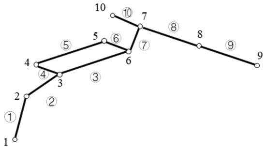 The overall structure of the robotic arm is simplified to a structure with ten nodes and ten beam units, as shown in Figure 3.
