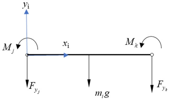 Herein, Fyj = Fyk = 1/2 mig (the concentrated load is positive, which means that the direction is the same as that shown in Figure 5, and the same for the following bending moment), Mj = –1/12 migli, and Mk = 1/12 migli.