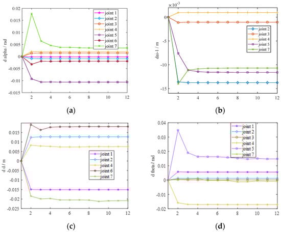 - If αi−1 = 0 and ai−1 = 0, δdi−1* and δdi* are mutually redundant, and δθi−1 and δθi are mutually redundant, and some parameters shall be eliminated.