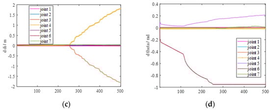 where ni7, oi7, ai7, and pi7 are the values of the transformation matrix from the ith joint coordinate system to the terminal coordinate system. Then, we can obtain the terminal errors induced by joint i as