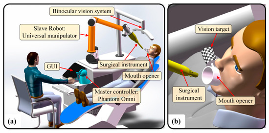 Oral diseases, such as oral tumors and tooth loss, are very common worldwide [1,2,3], and reduce the life quality of patients [4,5]. Oral surgery, such as tumor resection and dental implant, is indispensable in the treatment of oral diseases [6,7]. Traditional oral surgery relies entirely on the manual operation of the surgeon, so the accuracy, safety, and prognosis quality cannot be well guaranteed. The development of robotics provides new ways for oral surgery, which has great potential to assist surgeons to provide high-quality surgery and become the mainstream solution in the future [8,9,10].