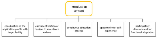 This part summarizes the statements that focus on the requirements for the introduction and use of a robotic system in an inpatient care setting (see Figure 3). A first area of requirements consists in the importance of specifying the robot’s application profile in advance with the facility. In this context, the results showed that an early discussion of the individual expectations of use, the actual possibilities of use, and the possibility of making one’s own experiences with the potential robotic system are essential prerequisites for the acceptance and use of robotic systems in care: “[…] I would appreciate, for example, that a robot will come to our facility and we can just take a look at it for a day and then say, it works or it doesn’t work.” (Int-L/nurse).
