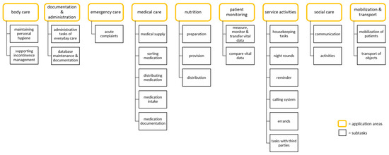 We identified 9 potential areas of application with an overall of 25 associated subtasks (see Figure 4), which will be explained in more detail in the following.