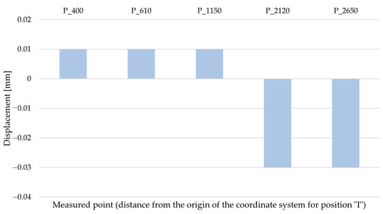 z-axis were evaluated in the same places where the deflection meter measurement was performed. To ensure greater reliability, two reference points were evaluated for each such location, placed symmetrically from the XZ plane. The displacement vectors of the selected points for the position “I” are shown in