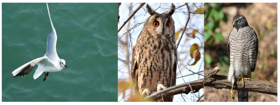 Left to right: seagull, long-eared owl, and sparrowhawk.