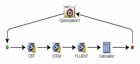 The airfoil developed using the airfoil parameterized module CST was incorporated into the ICEM module to achieve structured grids. After division, the mesh was incorporated into the Fluent module for obtaining the results. The objective parameters were then outputted from the calculation function block. Then, the MIGA was applied to the optimization module. Consequently, the numerical modeling data were post-processed. Thereafter, the lift–drag ratio, pressure, and velocity were varied and the aforementioned operations were repeated until the optimal solution was obtained, as illustrated in Figure 7. The operation process is depicted in Figure 8.